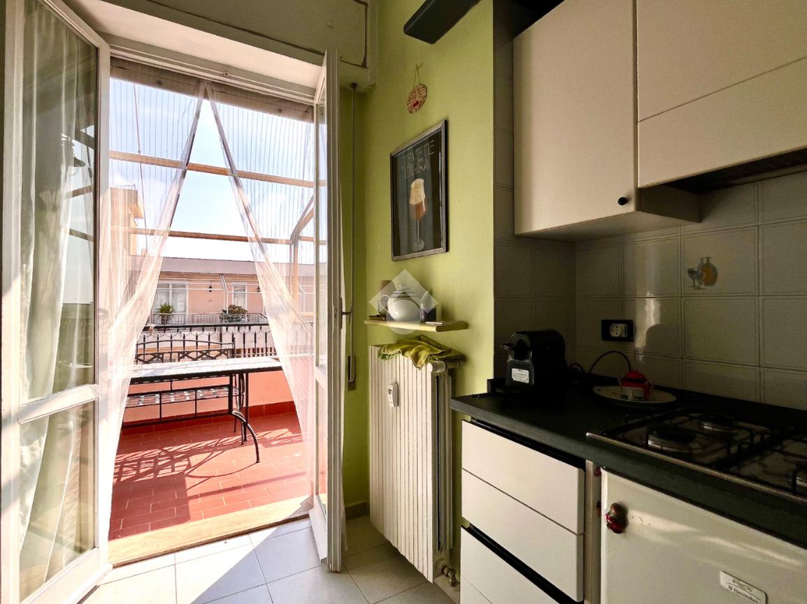 Situato al quinto ed ultimo piano di un edificio dotato di ascensore l'immobile offre l'ingresso sul disimpegno, la luminosa camera da letto, un soggiorno accogliente con sfogo sul generoso terrazzo, ideale per momenti di relax all'aperto, e un bagno funzionale.