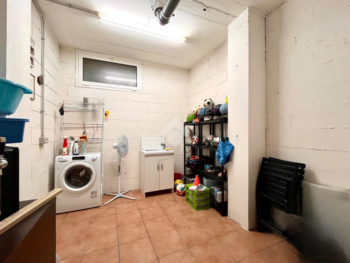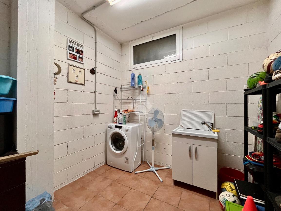 Scendendo nel seminterrato, troviamo una comoda cantina/lavanderia con accesso diretto al box auto, collegato internamente all’abitazione, garanzia di praticità e sicurezza.