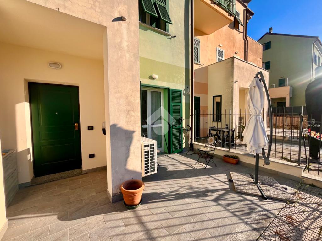 In recente e curata zona residenziale di San Fedele, Casa semi- indipendente edificata nel 2008 e ristrutturata nel 2023 caratterizzata da ampi sfoghi esterni e box auto.