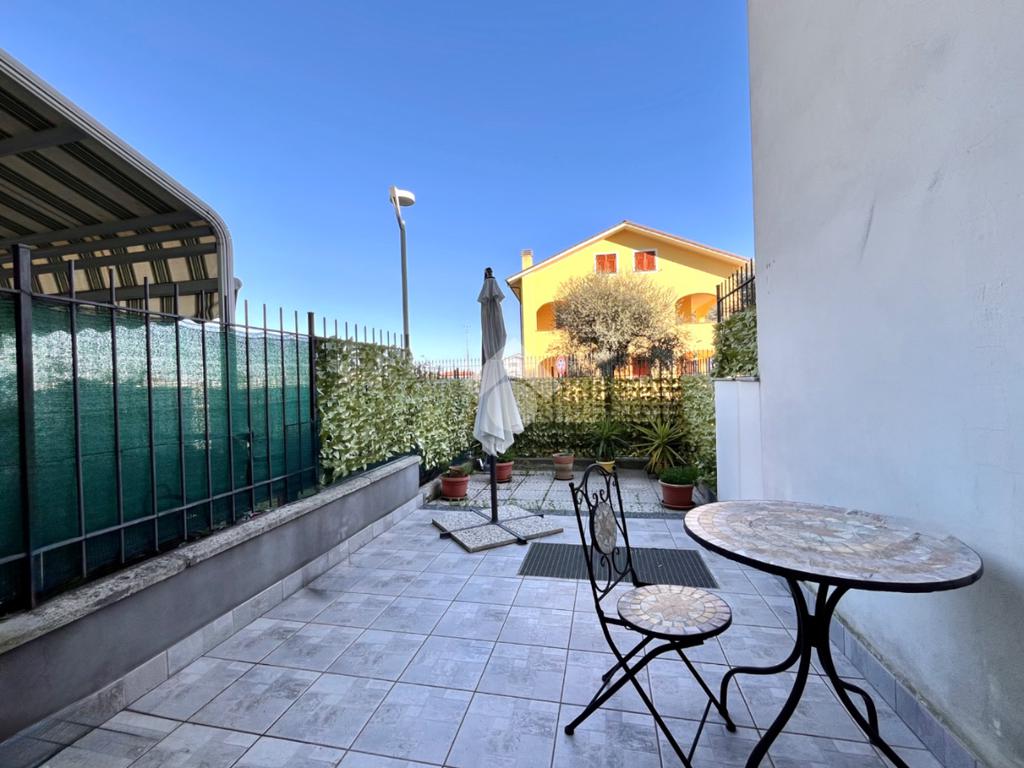 L’ingresso, indipendente sul giardino privato, conduce ad una ampia e luminosa zona giorno, al disimpegno, alla cucina abitabile anch’essa dotata di spazio esterno privato ideale per pranzi e momenti di relax all’aperto,ed infine un bagno munito di box doccia.