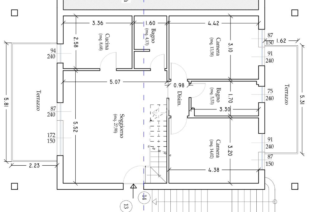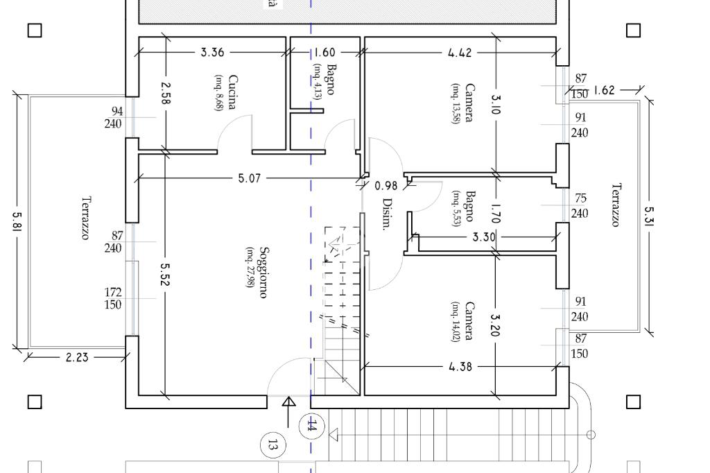 L'immobile, offre spazi generosi e ben distribuiti, e presenta l'ingresso sull'ampio salone, con sfogo sul primo terrazzo, che conduce alla cucina abitabile anchessa con sfogo esterno, al primo bagno/ lavanderia, alle due ampie camere matrimoniali con sfogo sul secondo terrazzo ed al secondo ampio bagno con vasca.