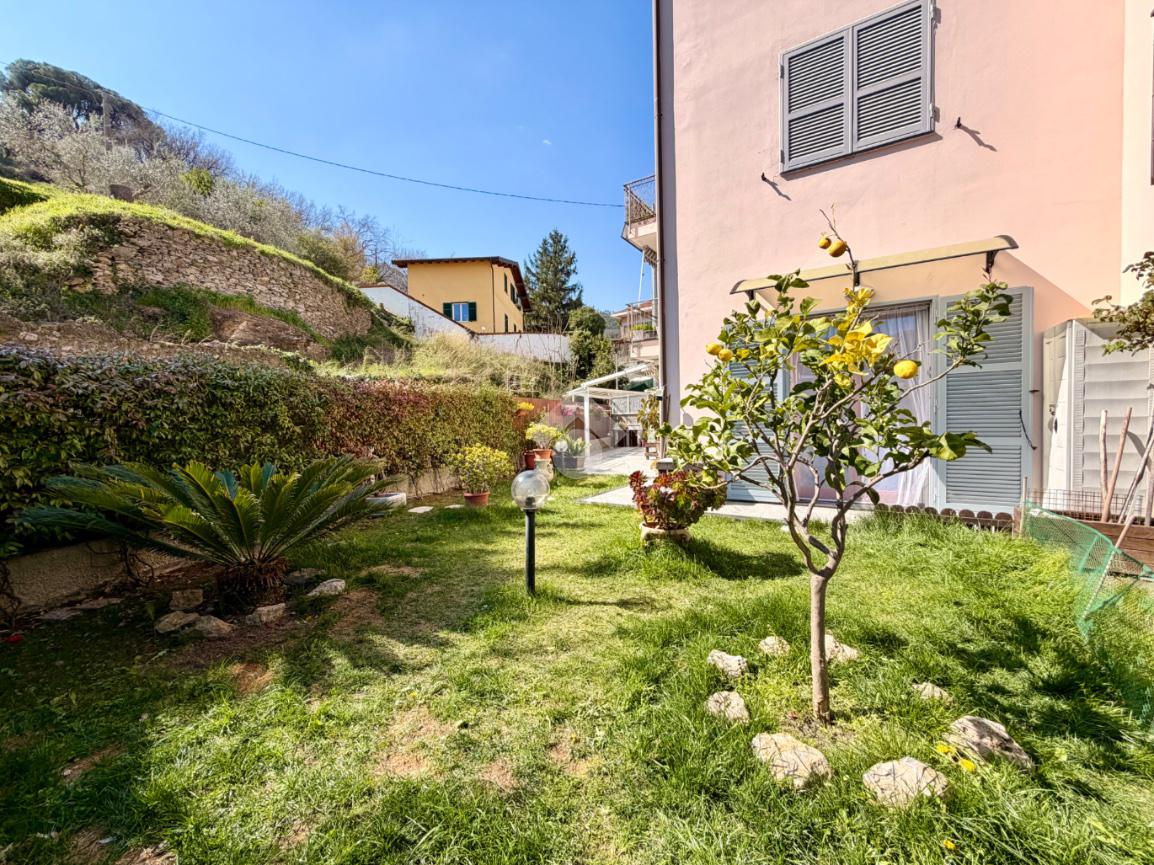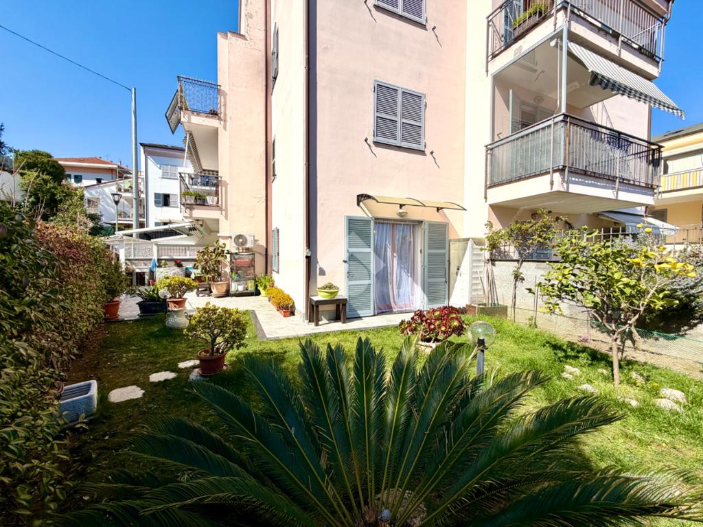 In zona residenziale di recente edificazione ed a soli 5 minuti di auto dal centro di Albenga e dal mare, Apppartamento sito al piano terreno con ampio giardino privato e autorimessa.