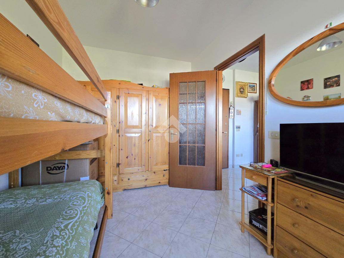 L'appartamento presenta l'ingresso sulla zona giorno con angolo cottura e sfogo sul primo balcone perfetto per godere di una splendida vista panoramica aperta, una cameretta con letto a castello, la camera da letto matrimoniale con balcone privato ed il bagno finestrato con doccia.