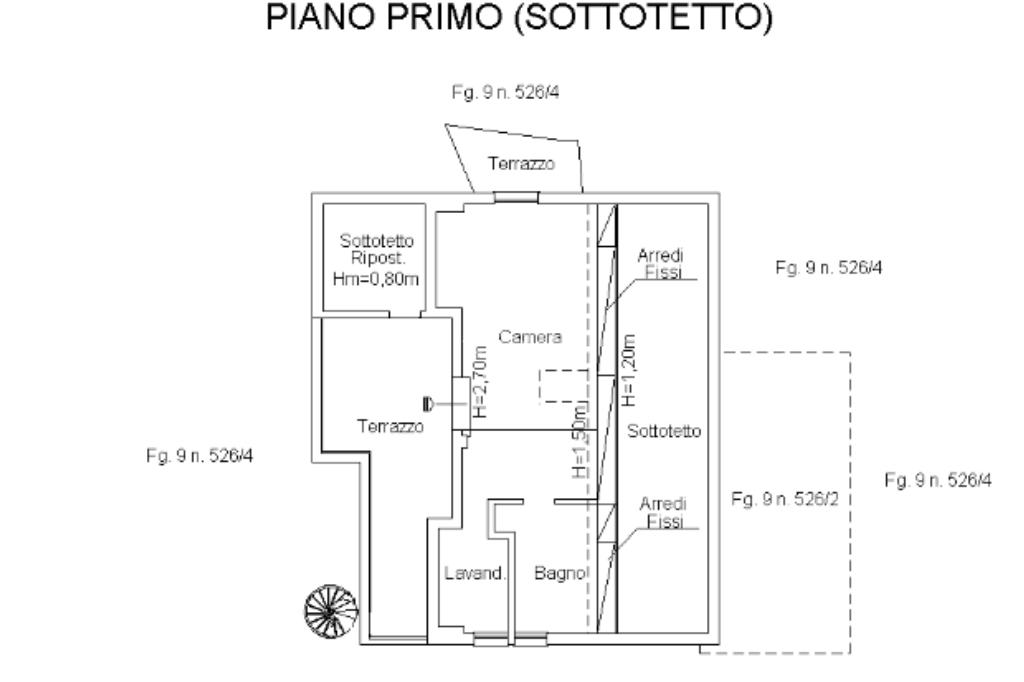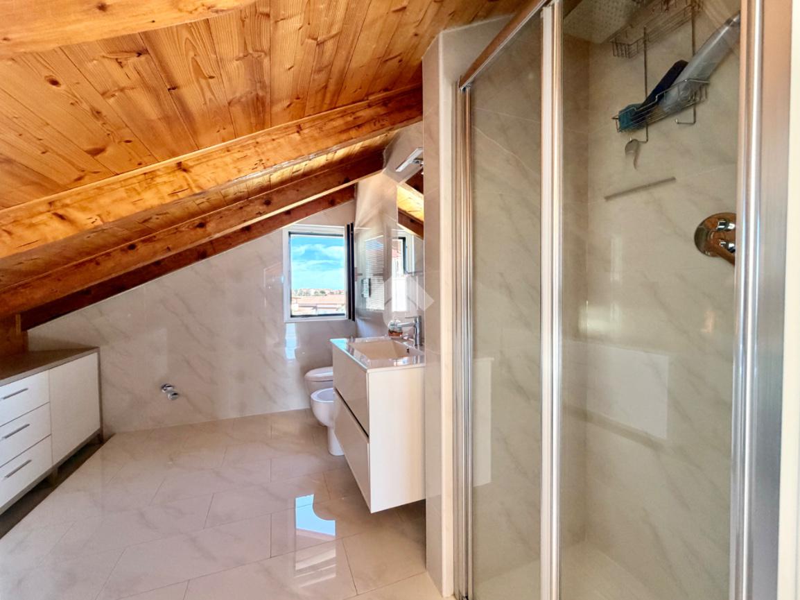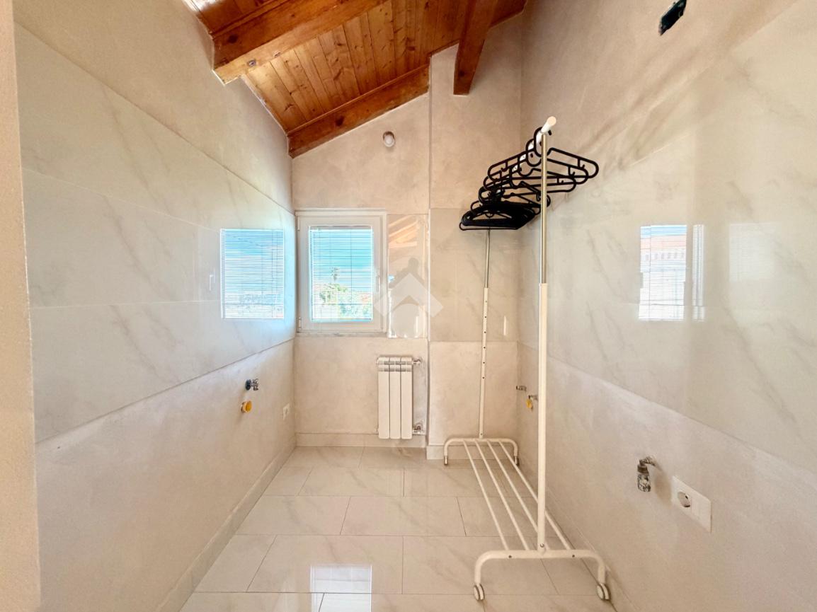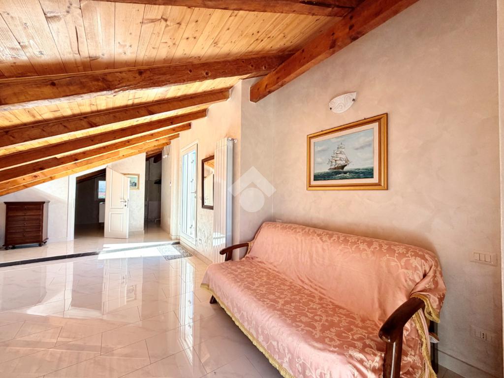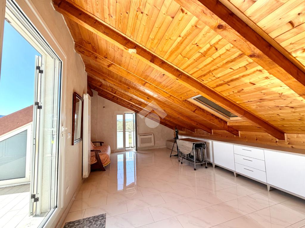 Al piano primo troviamo il comodo locale mansardato composto da un locale funzionale a soggiorno/ camera da letto con sfogo sul terrazzo panoramico, la zona cucina ed il bagno finestrato con doccia.